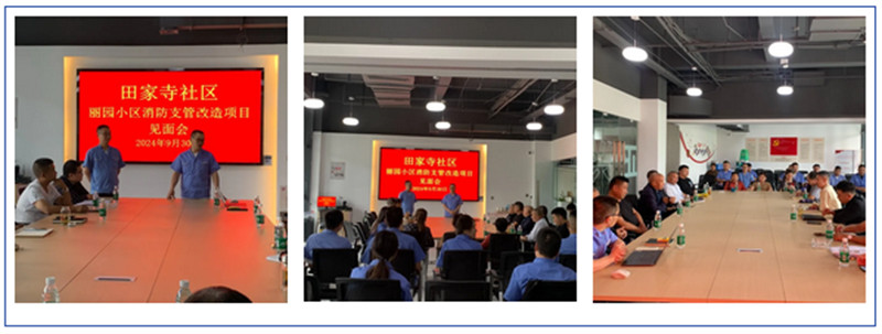 9月30日,公司負(fù)責(zé)人及全體現(xiàn)場人員同甲方代表在社區(qū)開展“田家寺社區(qū)麗園小區(qū)消防支管改造項(xiàng)目見面會”,深入探討施工過程中各細(xì)節(jié),及時發(fā)現(xiàn)和杜絕可能存在的問題,*在影響小的情況下保質(zhì)保量完成項(xiàng)目。